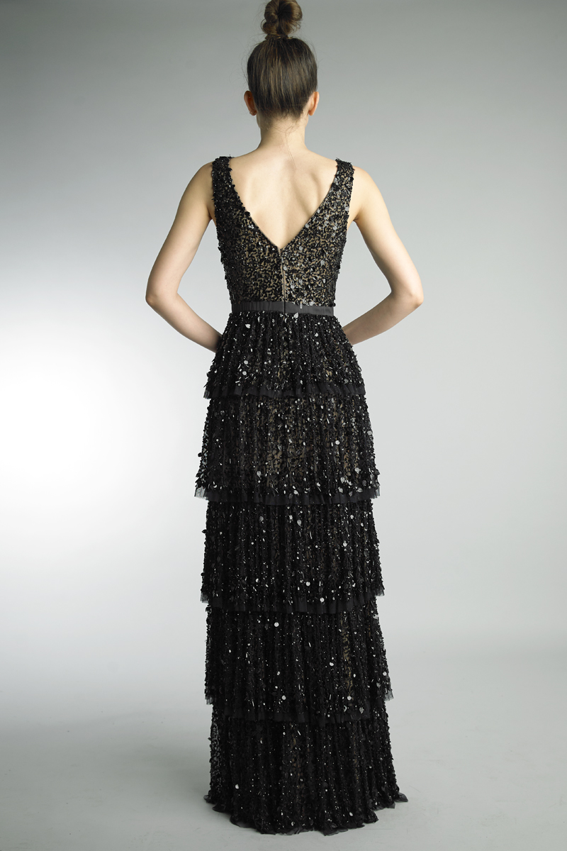 basix black label v neck sequin dress