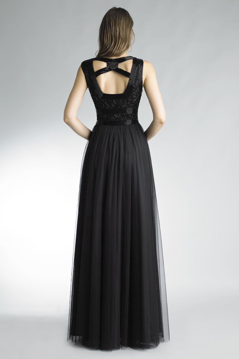 Embroidered open back evening dress