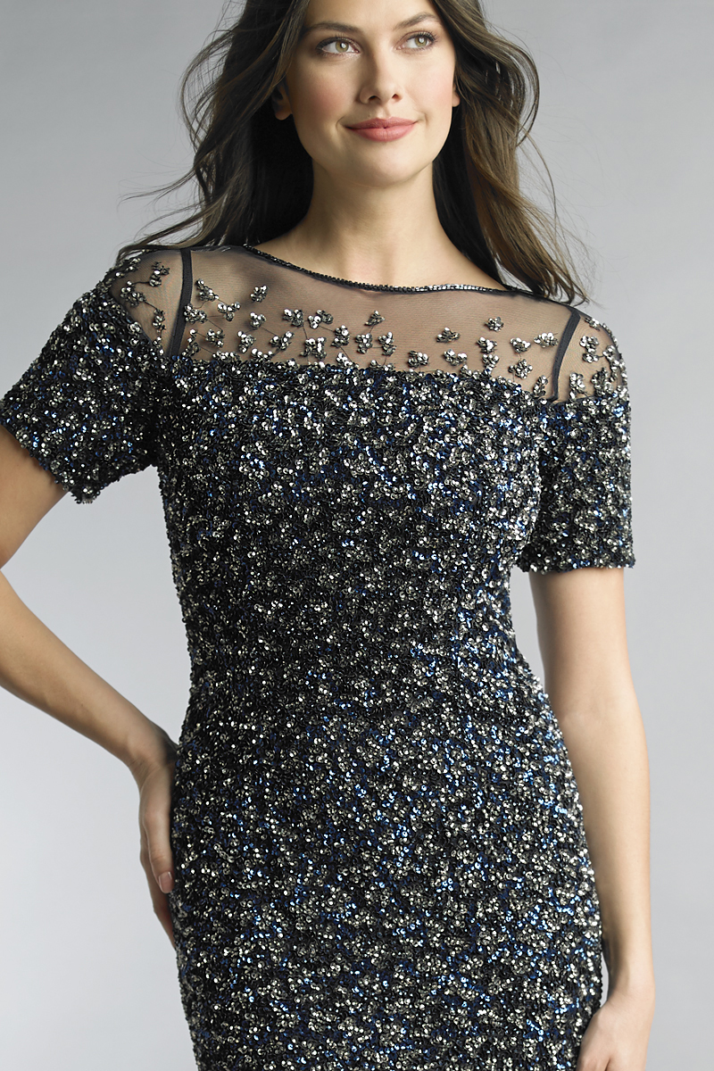 SEQUIN-EMBELLISHED SHORT SLEEVE COCKTAIL DRESS