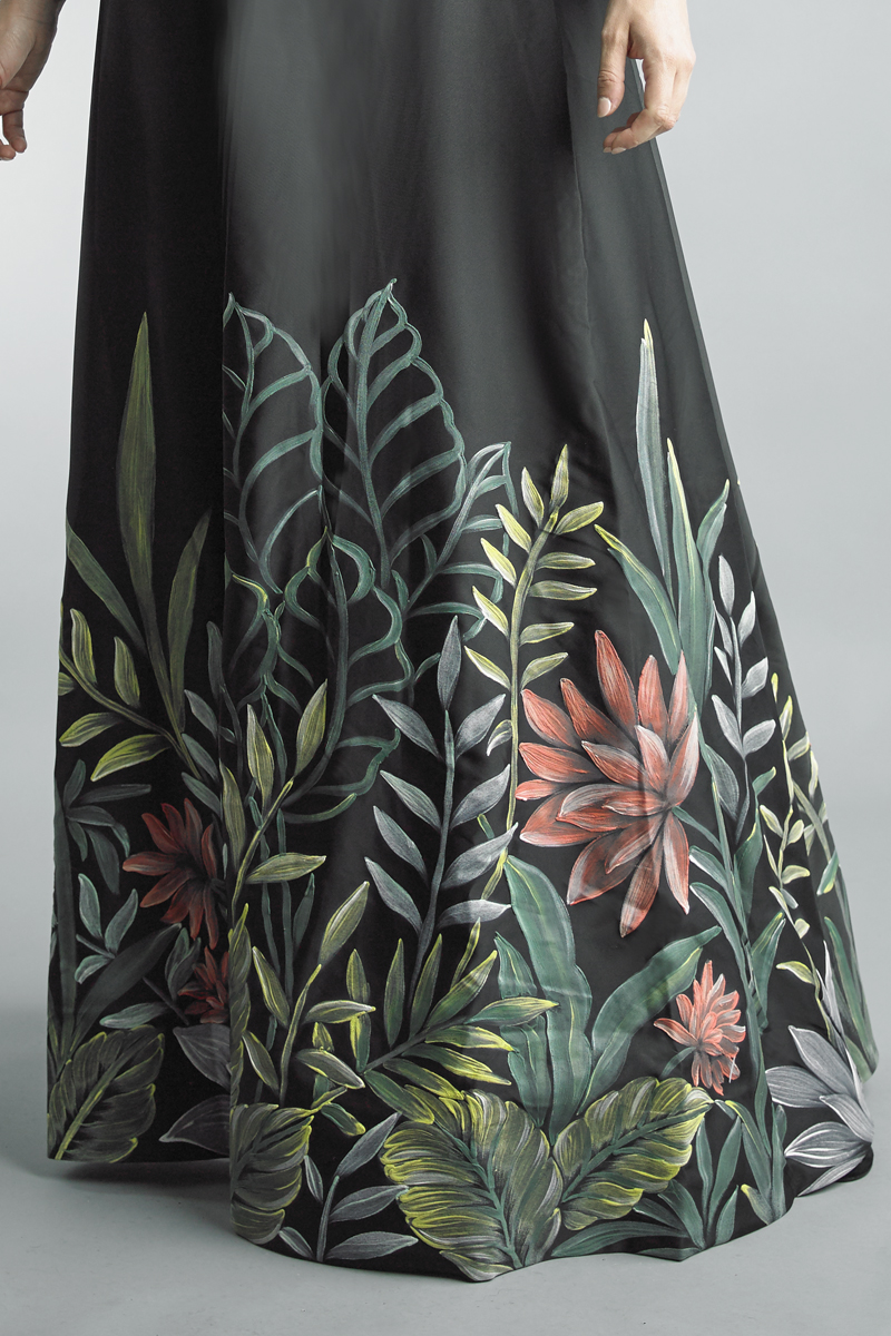 BOTANICAL SILK CHARMEUSE EVENING GOWN