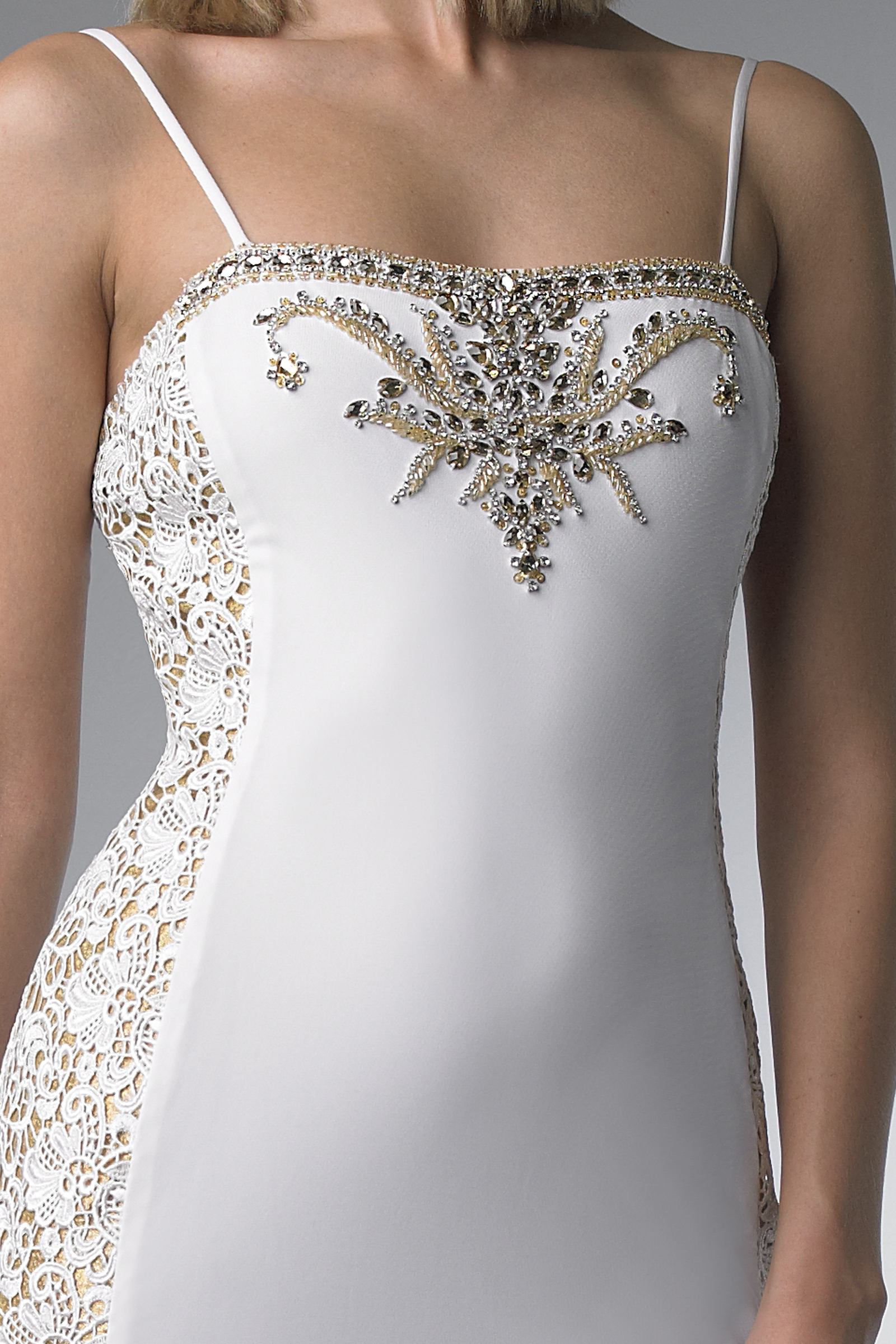 CRYSTAL-EMBELLISHED SPAGHETTI STRAP GOWN