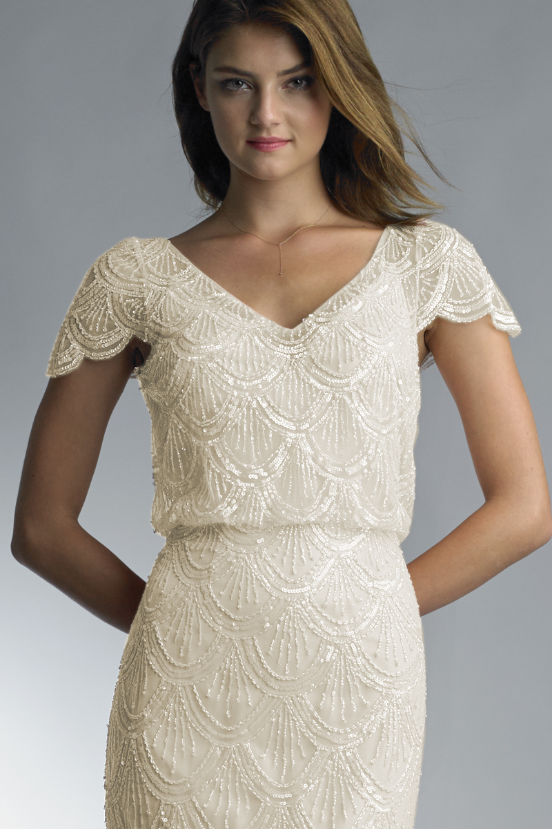 CAP SLEEVE SCALLOPED GOWN