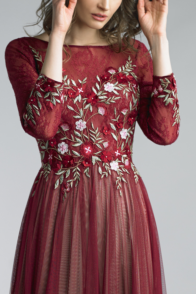LONG SLEEVE GOWN WITH FLORAL MOTIF
