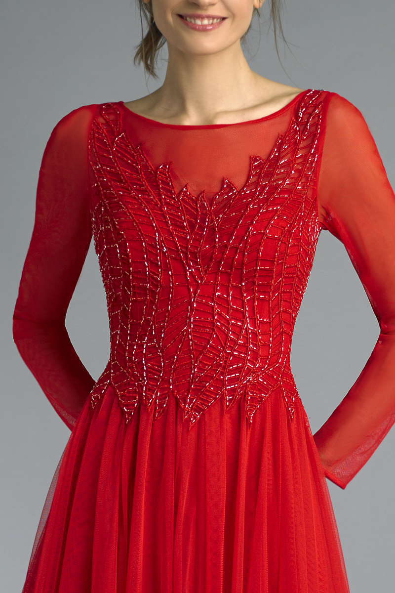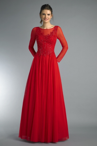 LONG SLEEVE EMBROIDERED EVENING GOWN