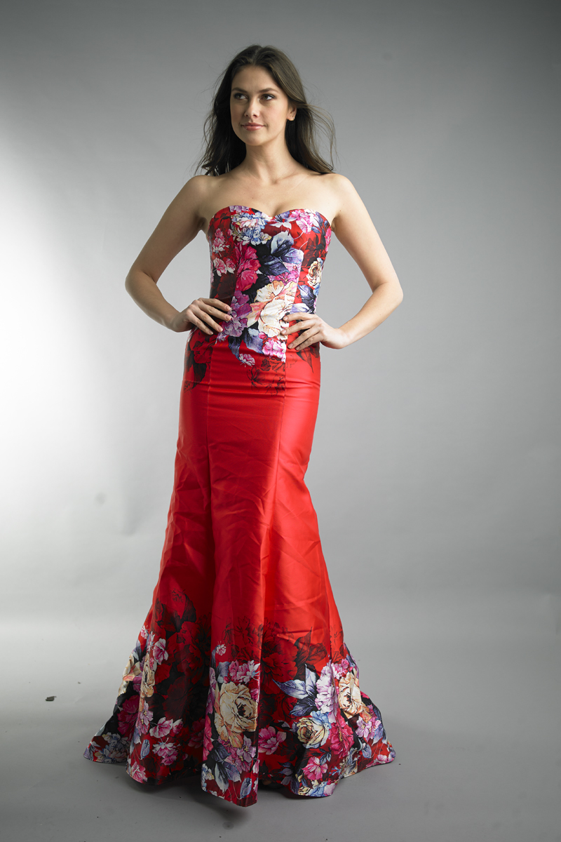 FLORAL SLEEVELESS EVENING GOWN