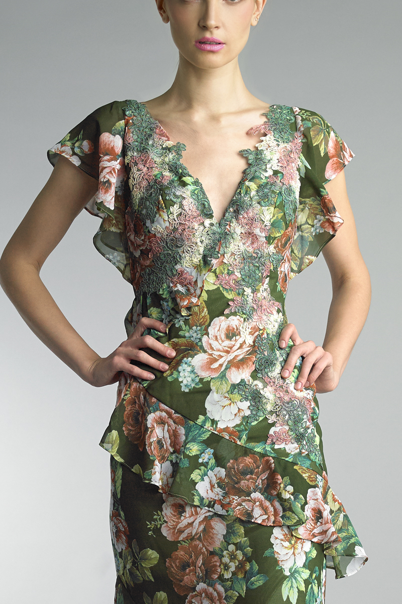 MULTI FLORAL EVENING GOWN