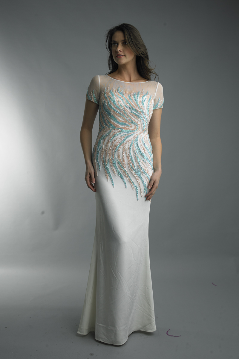 SHORT SLEEVE EVENING DRESS