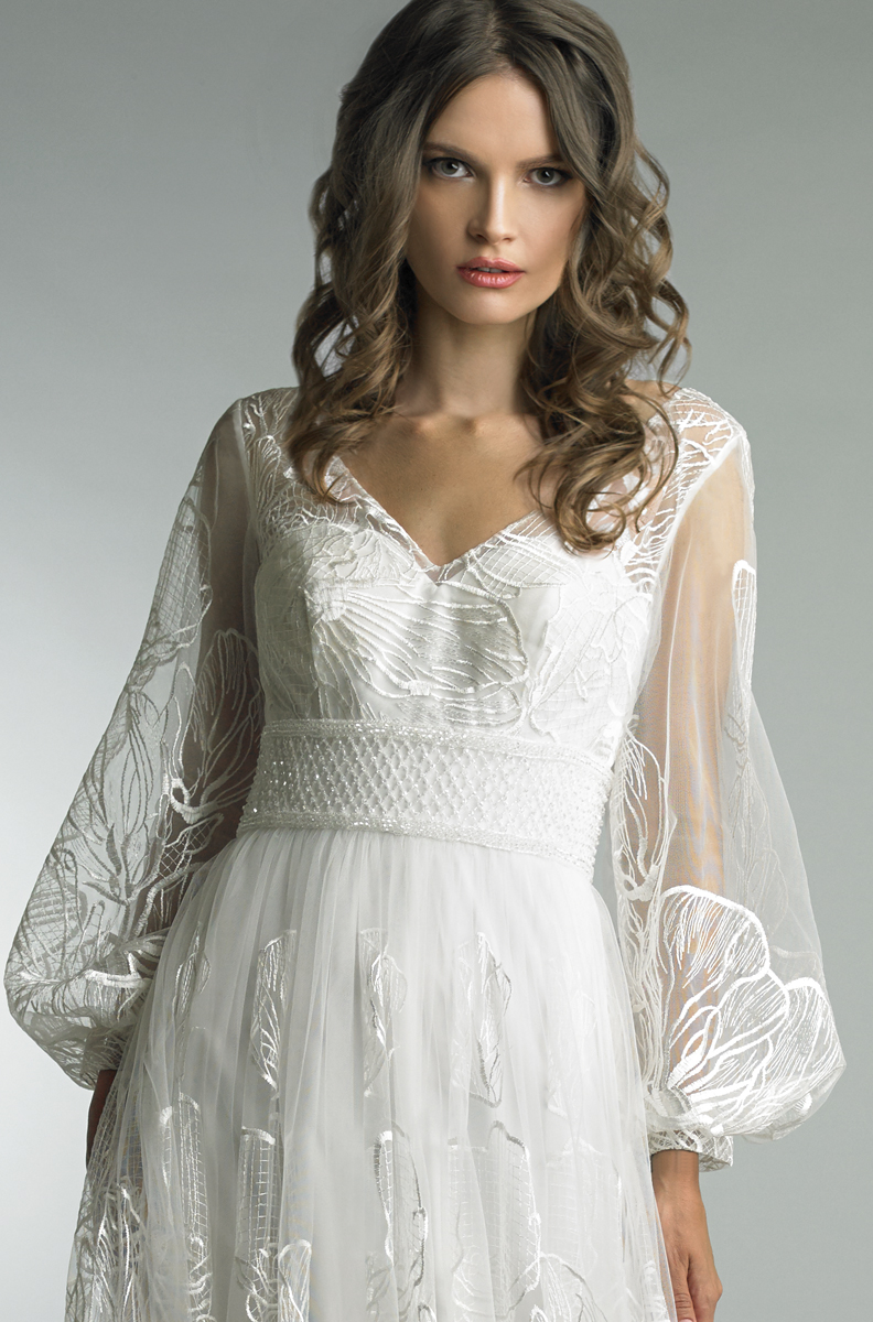 EMBROIDERED V-NECK GOWN