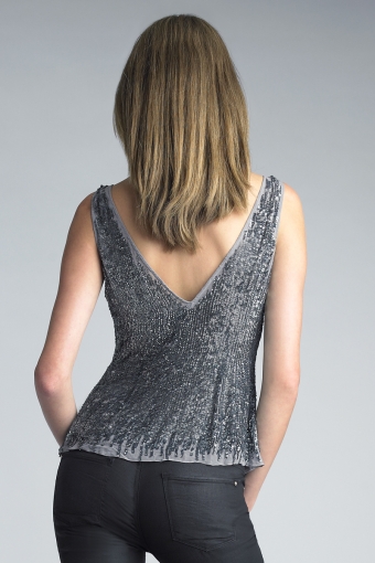 basix black label sequined v neck top