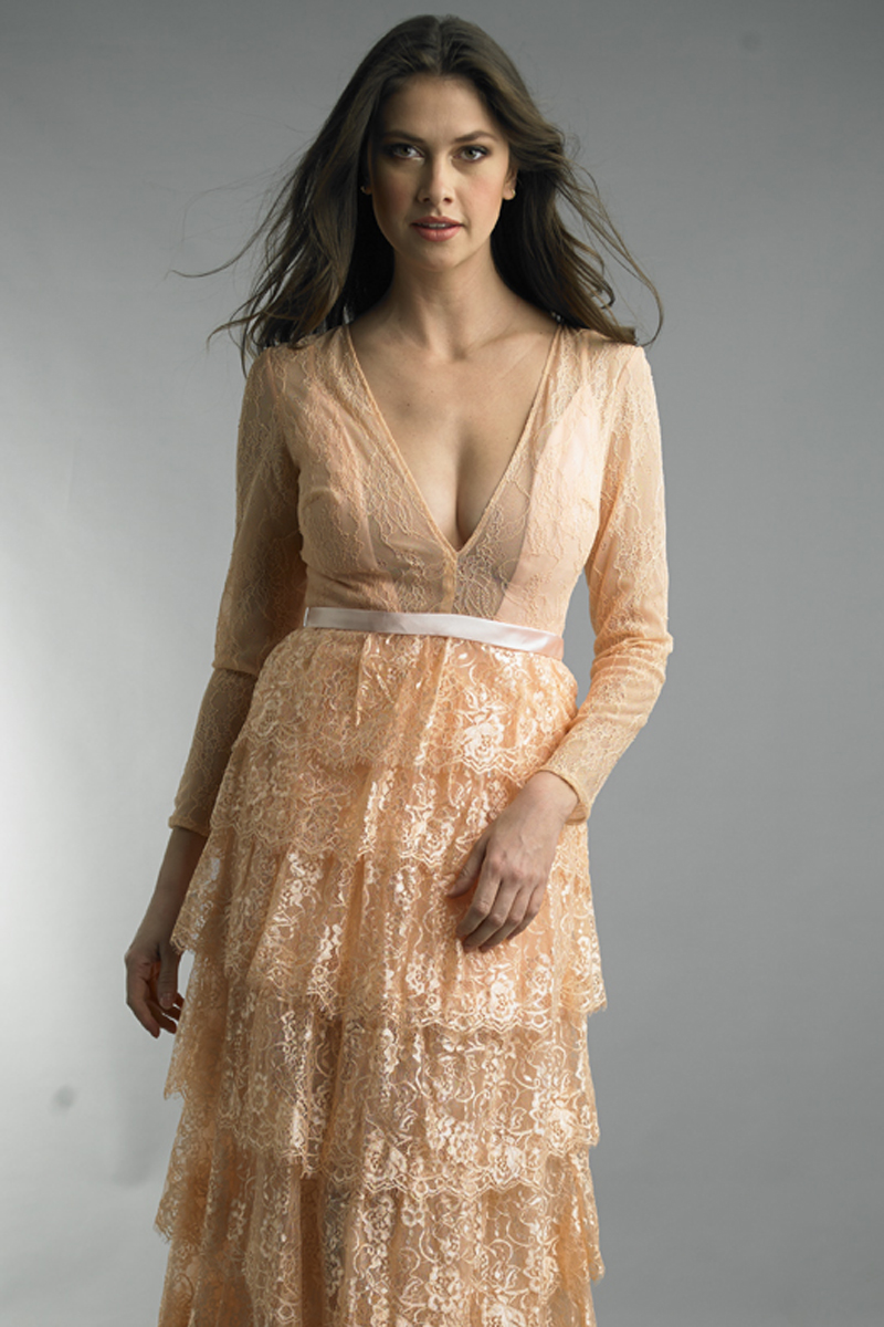 long sleeve tiered gown