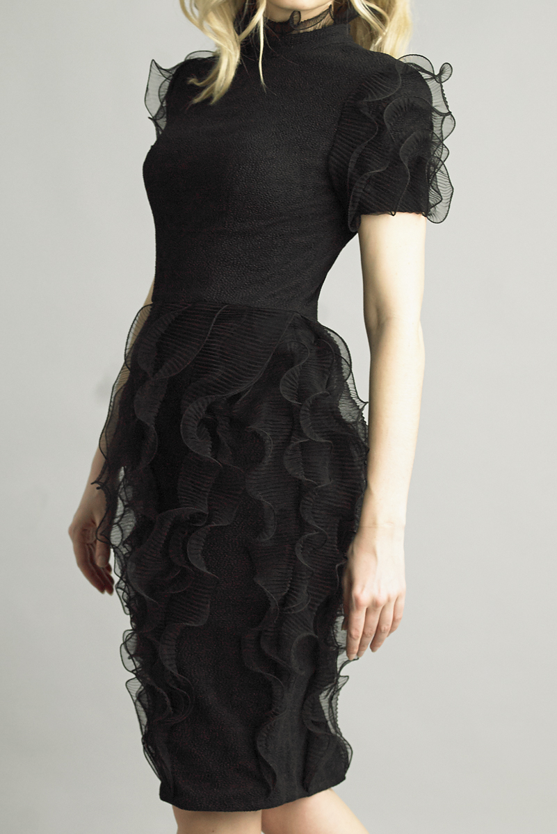 BASIX BLACK LABEL SHORT SLEEVE RUFFLE DRESS
