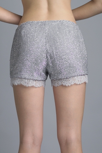 Scalloped Sequined Silk Shorts By Basix Black Label