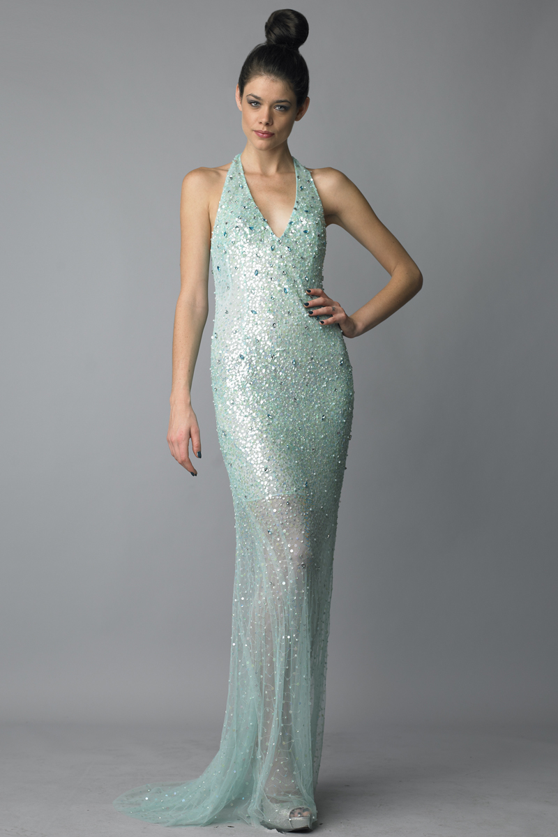 D5784L sequined halter evening dress $595.00 $295.00 $295.00 (≈% OFF)